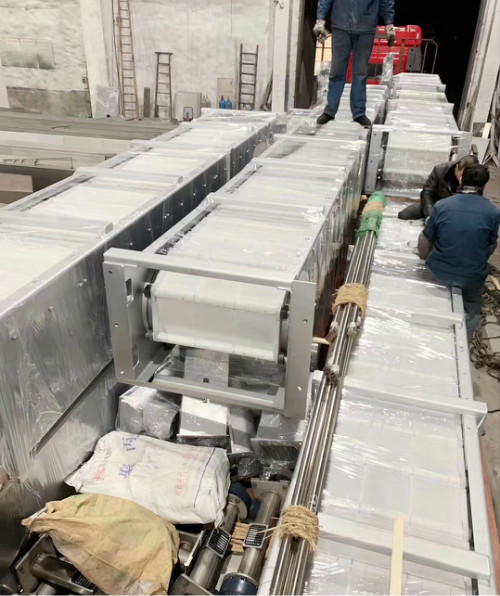 链扳为聚乙烯注塑件,结构设计独特,在网板回转过程中能很好的实现与导轨端面的密封,防止污物进入导轨造成滤后水污染和导轨磨损。